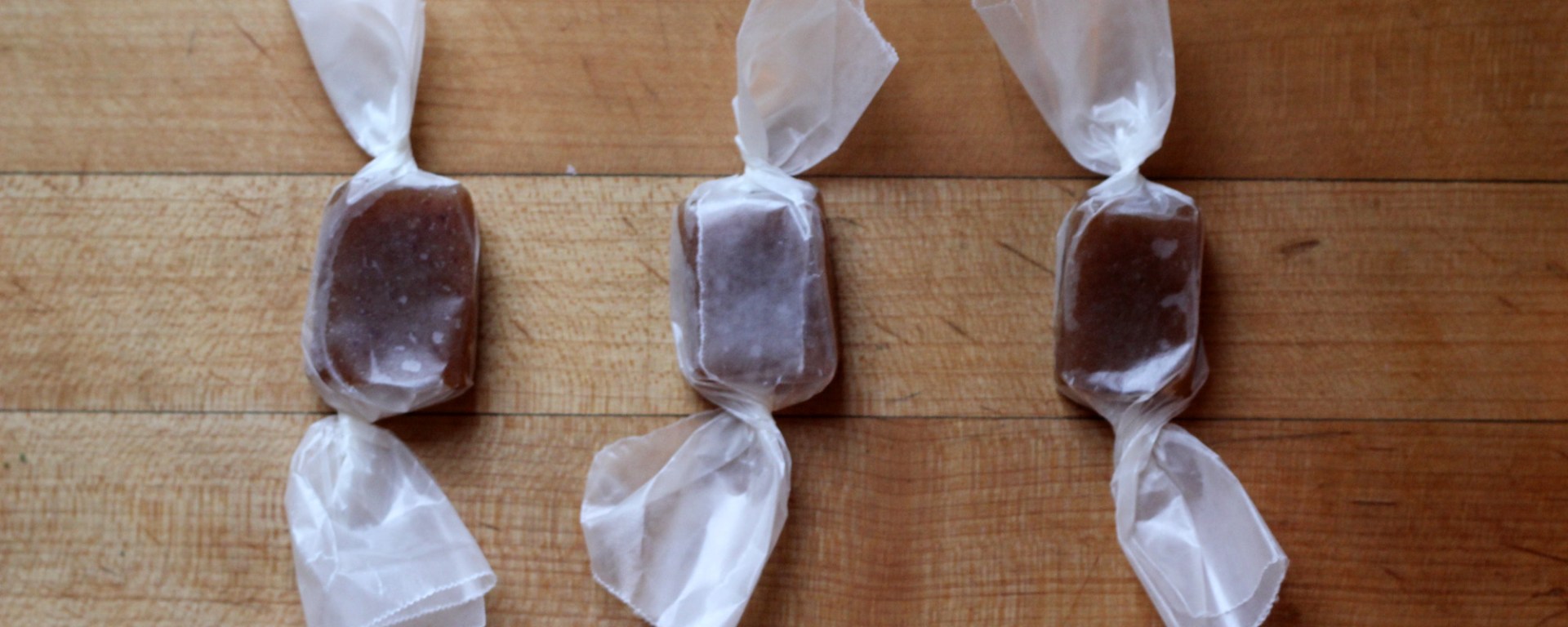 The only adjustment we do make when whipping these up is the temperature to which we let them climb. Smitten Kitchen’s original recipe calls for boiling ’till you reach 252F, just over the hard ball stage. We usually push ours just two degrees shy of that, to 250F, which is on the cusp of soft and hard. We like a pliable caramel, one that melts slowly on your tongue, if you’re patient enough to let it. This does mean our caramels are a bit soft at room temperature, but we prefer them this way. They’re not around for long, anyways…